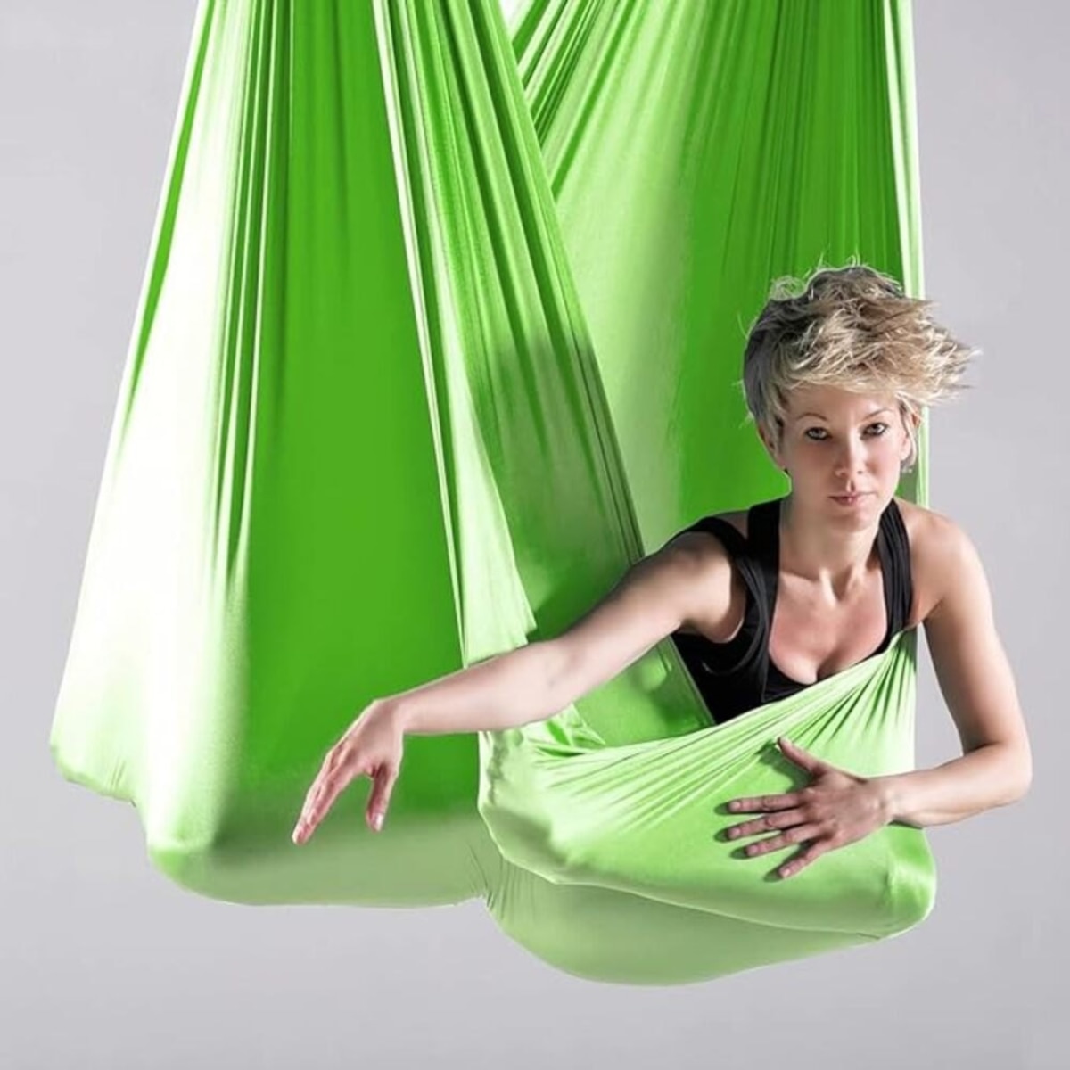 STUDIO GRADE MATERIAL: Made from premium grade 210T nylon parachute fabric to give you a comfortable stretch for yoga inversion. Triple Stitching provides added safety and durability which supports weight up to 500+ lbs IMPROVED STRENGTH & FLEXIBILITY. Aerial yoga inversion exercises helps improving the back pain, spinal decompression and pelvic floor issues. It also helps to improve the body’s strength and gain natural flexibility to cope with anxiety, stress and as a result you get restful sleep SIMPLE INSTALLTION: Our portable and adjustable aerial yoga swing kit also includes installation guide to help you with its quick setup feature. It can be installed anywhere, be it your home, gym or on a branch of a tree for the perfect yoga workout. Use it as a hammock outsides or a swing as your kids are going to love it. SPIRITUAL UPLIFTING & STRESS RELIEVING BLEND: Yoga hammock psychological effects triggers your inner optimistic aura, stables your mind & acts as a mood booster. Its ideal to use for stretching & relaxing as it acts as a mood booster and stress reliever so you can get both Improved physical and mental health