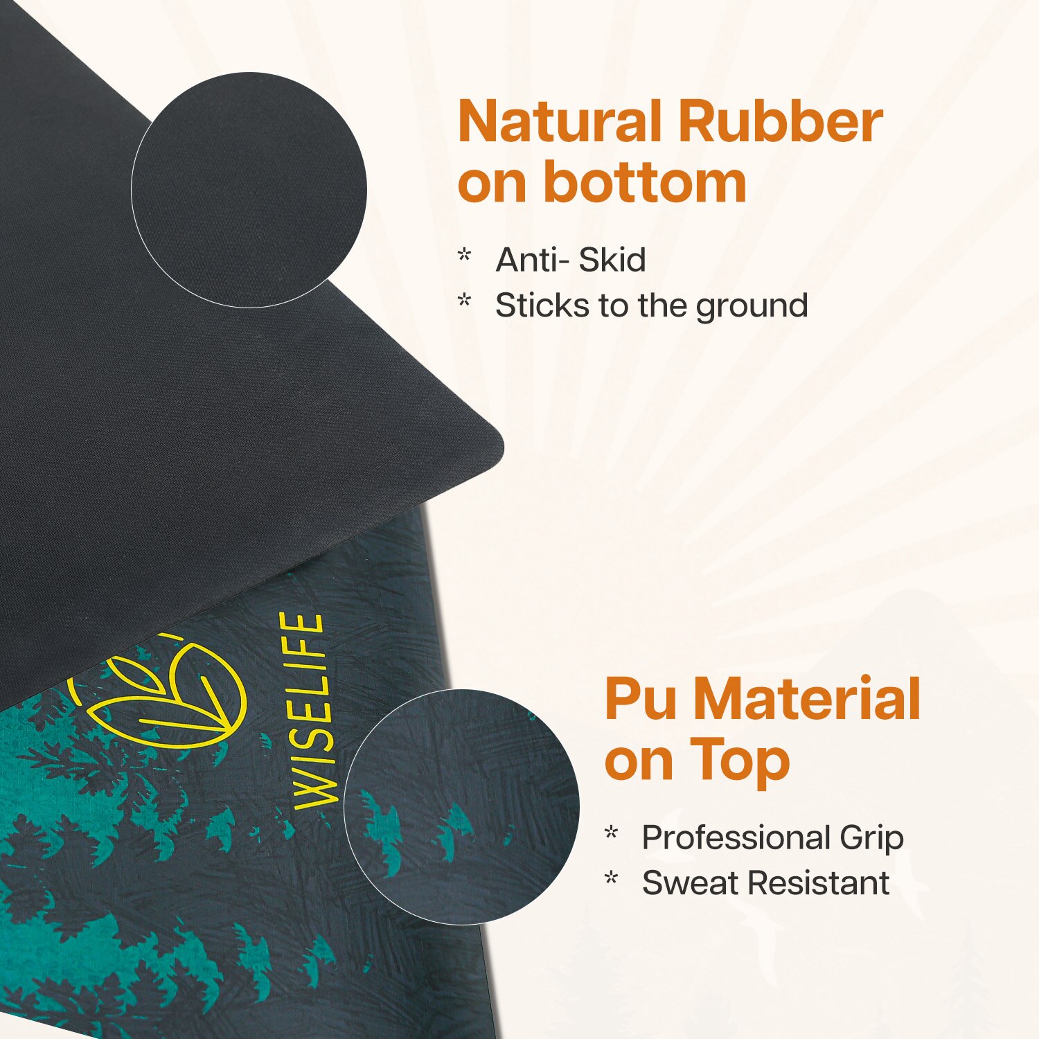 PREMIUM PU & NATURAL RUBBER : The top layer of the mat is made from a high-quality PU which offers exceptional comfort, balance, and a luxurious feel. The 100% natural rubber base provides professional grip and stability, ensuring your mat stays securely in place during every pose - ARTISTICALLY PRINTED DESIGN : Elevate your practice with our intricately printed surface, inspired by timeless, artisanal patterns. These elegant and thoughtfully crafted designs not only enhance the visual appeal but also add a grounding, calming energy to your sessions - SUPERIOR TRACTION & GRIP : Designed to offer excellent traction during every pose, even in sweaty sessions, this mat ensures a secure, non-slip surface. The high-quality material provides OPTIMUM grip. Whether you're holding challenging poses or flowing through dynamic sequences, the superior traction enhances your performance and keeps you focused - OPTIMUM THICKNESS, LONG & WIDE DIMENSIONS : Designed to offer an optimum balance, comfort, and stability, this mat supports your joints while maintaining a firm, grounded surface. Extra-long and wide (72” x 27”) to comfortably fit all body types. The premium thickness provides cushioning for comfort, while ensuring stability during intense poses - ULTRA DURABLE & LIGHTWEIGHT : This yoga mat is tear-resistant, ensuring long-lasting durability for daily use. It is lightweight, making it easy to roll, and simple to store. Its ability to withstand wear and tear while staying portable makes it ideal for consistent use, whether at home, in a studio, or yoga on-the-go - VERSATILE FOR ALL EXERCISE TYPES : Ideal for all exercises, including yoga, Pilates, HIIT, Zumba, cardio, strength training, and other fitness routines. Its durable, non-slip surface ensures stability during intense movements and poses. Its versatility makes it the ideal companion for fitness enthusiasts of all levels - COMPLIMENTARY CARRY STRAP : Carry your yoga mat in style with ease. The included carry strap makes storage and transportation simple and convenient. Whether you're heading to the gym, studio, or practicing outdoors, this lightweight strap allows you to effortlessly roll and carry your mat. It’s the perfect solution for yogis on the go, offering both practicality and a sleek design